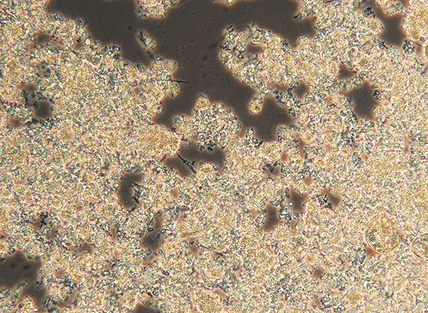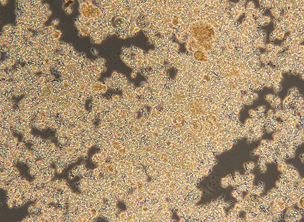 フロックの淵に僅かに粘性のフロックが観察出来ます。