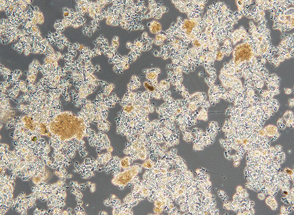 活性汚泥フロックは、酸素が摂取出来ているフロックで、フロックの纏まりも良く成っています。