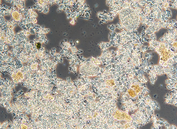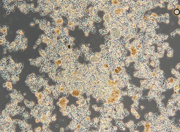 上の画面の、倍の倍率で診るとフロック内部が青く見えるフロックが酸素が摂取出来ていないフロックです。