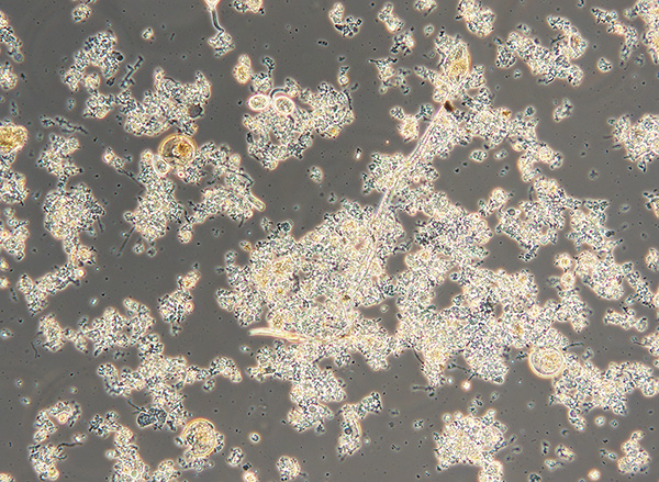 活性汚泥フロックは、典型的な粘性分散フロックです。